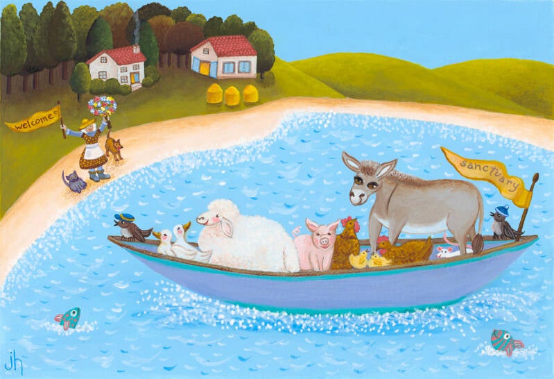 "My paintings are simple and naive but I endeavour to capture a deeper meaning." Jennifer.